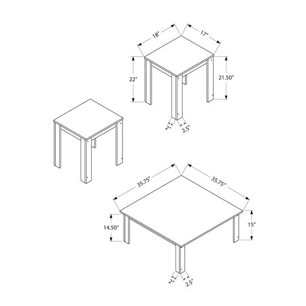 You've got a highly contemporary 3-piece living room table set here for the taking. Featuring a sleek taupe wood color, show off this coffee table set that is simply on another level. Including a coffee table and two matching cocktail tables all strongly built with symmetrical square-cut legs for extra sturdiness, your apartment, condo or home will be refreshed with a brand new appeal.