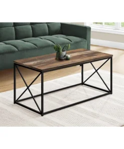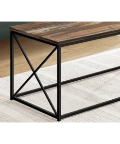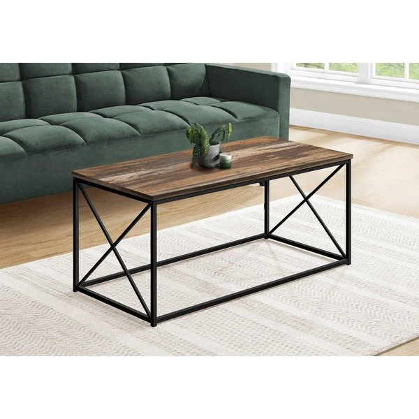 Inspired by clean lines and a simplistic, yet modern feel, this medium brown reclaimed wood-look and black metal coffee table offers a contemporary allure that will make you feel comfortable in your living room, office space or den. Featuring a smooth modern medium brown reclaimed wood-look table top finish which will brighten up your living space, while the X shaped black metal legs contrast and complement the table top. Add this stand-out center table to small home, condo, or apartment's decor collection now!
