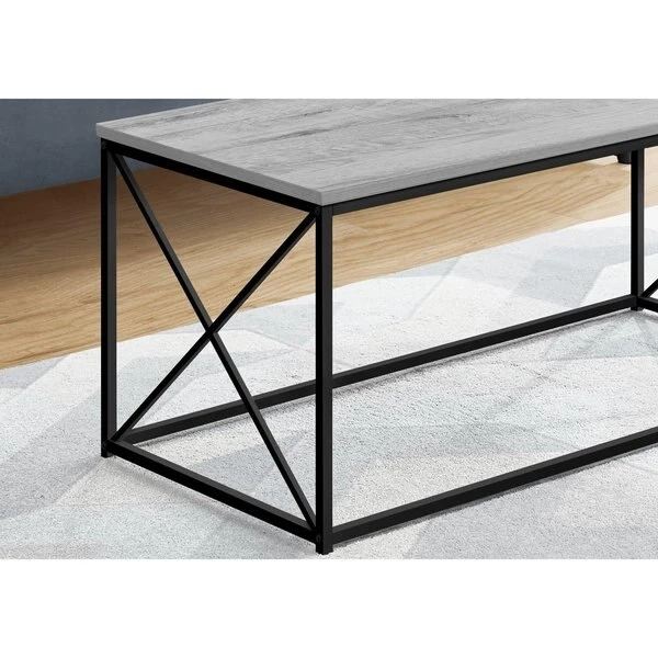 Inspired by clean lines and a simplistic, yet modern feel, this grey and black metal coffee table offers a contemporary allure that will make you feel comfortable in your living room, office space or den.Featuring a smooth modern grey wood-look table top finish which will brighten up your living space, while the X shaped black metal legs contrast and complement the table top. Add this stand-out center table to small home, condo, or apartment's decor collection now!