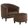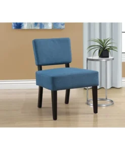 Combining contemporary lines and retro style, this versatile accent chair will bring sophistication to any room. It features sturdy, solid wood legs and exposed backrest supports in a black finish that provide an interesting visual contrast next to the soft, blue fabric. With a deep, extra-wide seat and gently curved backrest that offer maximum comfort, this upholstered armless chair makes a great guest chair or slipper chair in a living room or bedroom.. Upholstered armless accent chair in a blue fabric. Cushioned backrest and deep, wide seat with extra padding for comfort and support. Squared solid wood legs and backrest supports in a black finish provide stability. Assembly required: All parts are located underneath the seat cushion; illustrated instructions are provided for convenience (additional tools may be needed). Product dimensions: 22.75 inches L x 27.5 inches W x 31.5 inches H