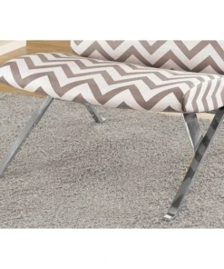 For those in need of an on trend, fashion statement accent chair, this one's for you. Upholstered in a tan and white chevron pattern, it is both comfortable and practical. It features shiny metal legs for sufficient support with the perfect splash of elegance to your living space. Keep in mind that an armless accent chair allows for easy movement – Perfect for guests and it is also a space saver. Lounging at its best, folks!