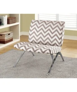 Monarch Specialties Accent Chair – Dark Taupe " Chevron " With Chrome Metal