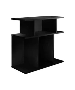 Embellish your space with this solid, beautifully crafted contemporary style rectangular side table finished in chic black. Featuring clean lines and 6 open concept display shelves, this practical accent table is perfect for showcasing your favourite decorative pieces, or a small plant, as well as a handy storage unit for your latest books. A versatile must-have accent piece for any space in your living room, family room, or office. Assembly is required. 6 open concept display shelves to place books and decorative objects. Can be used as a hall or sofa console as well as an end or side table. Three tiered contemporary design. Finished in a sophisticated black tone.