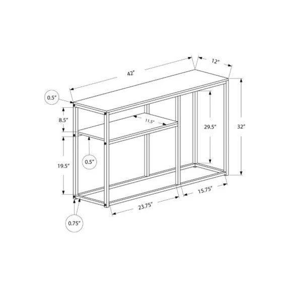 Monarch Specialties Accent Table – 42"L / Grey / Black Metal Hall Console