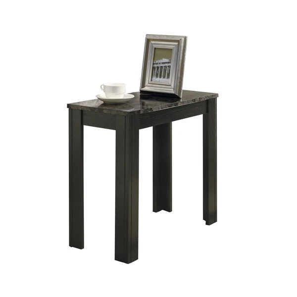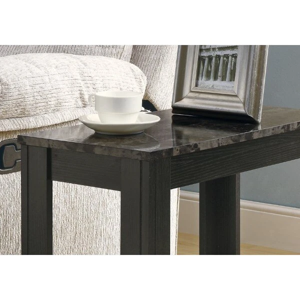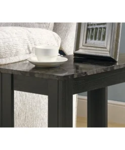 Add a classy appeal to your space with this rich black and grey marble-look top rectangular side table. The black solid tapered legs are designed with subtle details that accentuate this piece. Place a lamp, picture frame, plant or any decorative item on this functional side table. A practical accent piece in a transitional style for your living room, family room, or den.. Rich black finish with a grey marble-look table top. Convenient as a side or accent table in your living room, family room, den, office space. Sturdy, stylish tapered legs. Transitional style blends well with any décor.