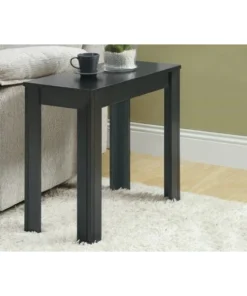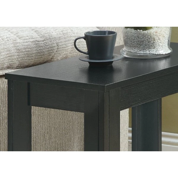 Add a classy appeal to your space with this rich black oak finish rectangular side accent table. The solid tapered legs are designed with subtle details that accentuate this piece. Place a lamp, picture frame, plant or any decorative item on this functional side table. A practical accent piece in a transitional style for your living room, family room, or den.. Rich black oak finish. Convenient as a side or accent table in your living room, family room, den, office space. Sturdy, stylish tapered legs. Transitional style blends well with any décor.