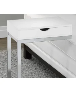 Monarch Specialties Accent Table – Chrome Metal / Glossy White With A Drawer