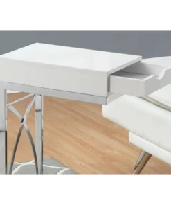 Monarch Specialties Accent Table – Chrome Metal / Glossy White With A Drawer