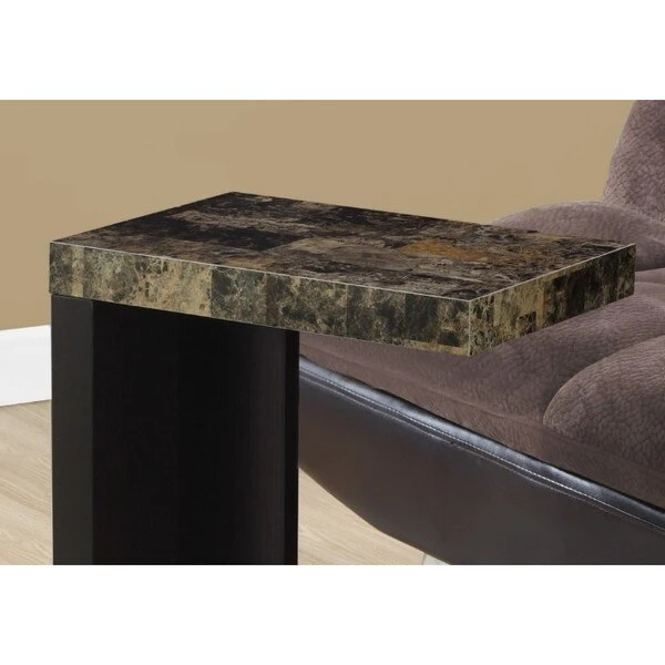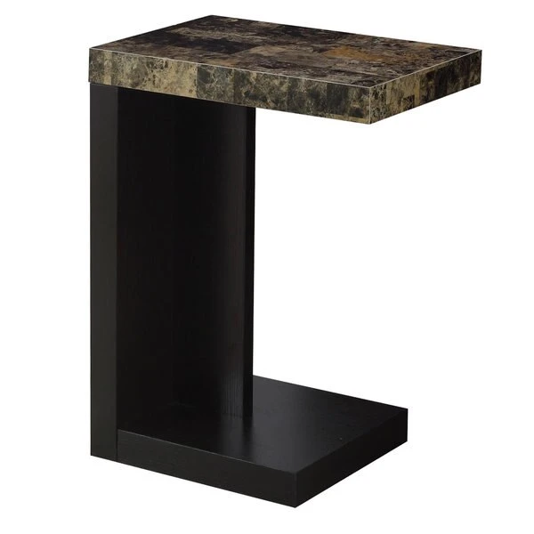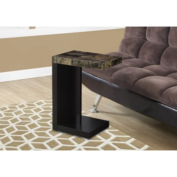 Made for simplicity, this side table can be effectively used as an end table, accent table or even nightstand in the living room or bedroom. Easy to slide underneath your sofa, couch or bed thanks to its practical C-shaped design, it is also perfect for snacks and a laptop or tablet! Constructed of a thick dark brown panel with a sleek marble look table top finish, this C table is set to enhance the living space in your small home, condo, dorm or apartment. Your home will look marbleous!. Easy to use, well-rounded thick panel snack table slides perfectly under or along your sofa in the living room . Multi-purpose sofa table, bedside end table or accent table that can make a statement in your entrance . Brown marble top finish is a more than trendy look for your living space . Any decor style will mix well with this dark brown living room table in small homes, apartments or condos .