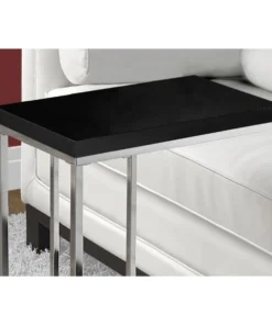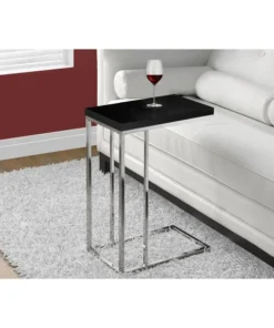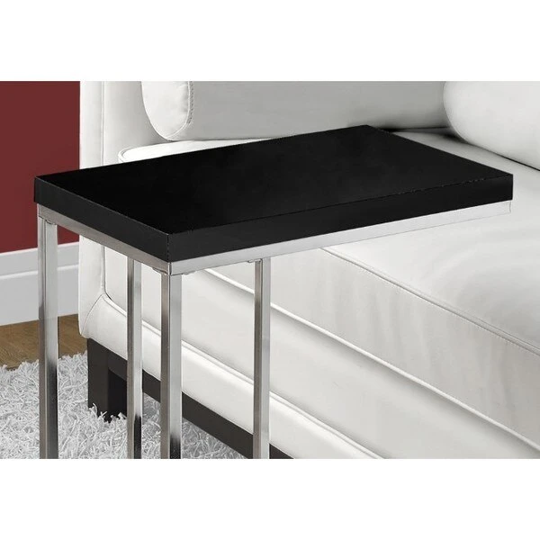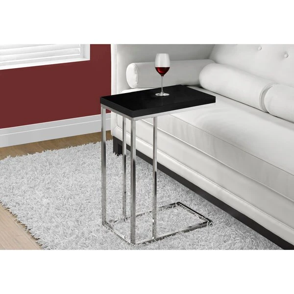 For a brilliant home upgrade, this glossy black C shape side table does the trick. Supported by an elegant chrome metal base, the end table is made for anything from snacks and drinks to your laptop, tablet and even decorative accents that complement the rest of your decor. Bringing a modern touch to your small home, condo or apartment, this C table slides nicely under the couch or bed. Study session? Favorite movie? Quiet reading time? This side table handles all of the above.. Elevate the modern tone of your living room, office space, family room or den with this stylish glossy black and chrome metal C end table. Use it conveniently as a snack table or sofa side table. This C shape side table slips easily under your sofa, chair or bed and sits slightly off the ground to prevent damage to your floor. Solid chrome metal base delivers optimal stability.