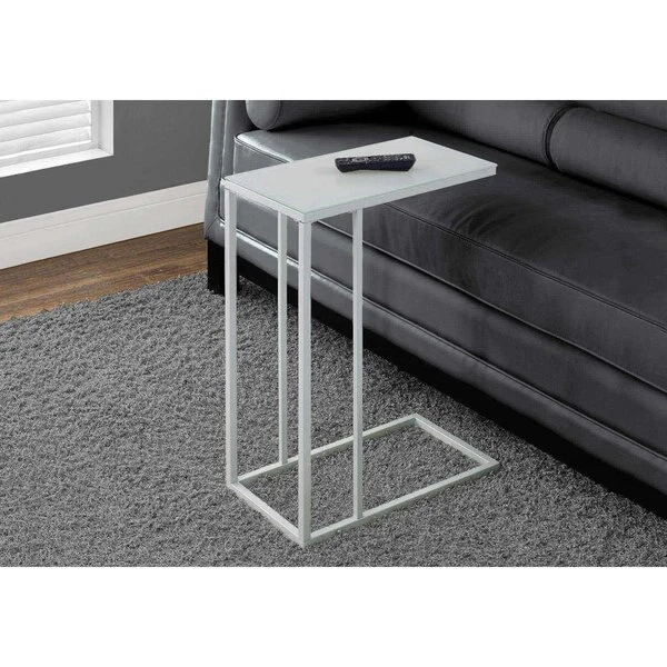 Monarch Specialties Accent Table – White Metal With Frosted Tempered Glass