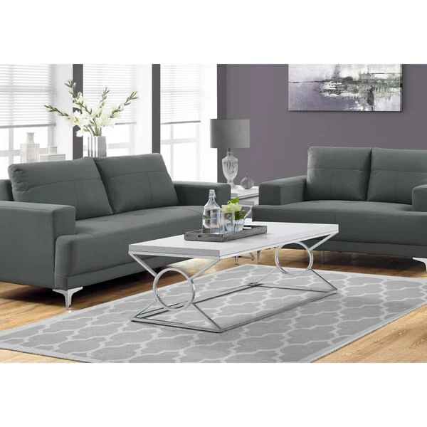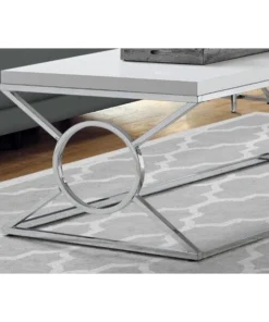 Monarch Specialties Coffee Table – Glossy White With Chrome Metal