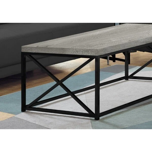 Monarch Specialties Coffee Table – Grey Reclaimed Wood-Look/ Black Metal