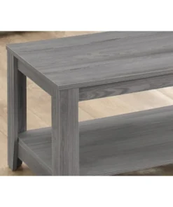 Whether you need the perfect living room table set to match your current decor style or if you're starting fresh, this is the perfect coffee table and end table trio for you. In a beautiful trendy grey wood-look finish, these living room tables offer top and bottom shelves for ample storage space so that you can sport any decorations or electronics. Made of a sturdy, thick panel construction, these tables can be placed just about anywhere in your living room, family room or basement. They are also perfect for small homes, condos or apartments.. Ideal match for your sofa with a versatile grey wood-look finish. Characterizing contemporary styling accurately with a wood look texture, this living room table set includes one coffee table and two end tables. Each table in this 3 piece coffee table set boasts ample surface space for decorations, electronics, books or more; perfect for the living room, family room, basement or den. Each table has a bottom shelf for even more storage options.