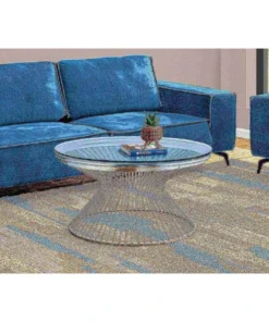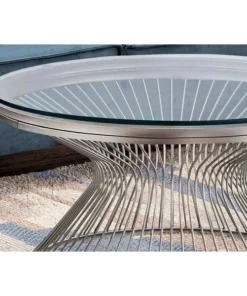 If you want a unique accent piece to anchor your living room, then look no further than this elegant round coffee table with an open hourglass base. The spacious tempered glass top is large enough to place a decorative item with some coffee table books, while the subtle finish on the sturdy, wired stainless-steel base blends with many styles of decor. The size is perfect even for small spaces, with its contemporary boho appeal. Assembly is required.. Contemporary style round coffee table with a chic boho vibe. Thick, clear tempered glass top with plenty of space to showcase books and decorative objects, or for a tray of appetizers when entertaining. Strong, open hourglass wire frame and compact size accent table that will not overwhelm a space. Understated and elegant stainless steel finish coordinates with many decor styles.