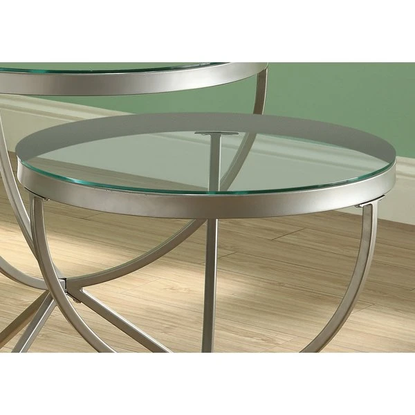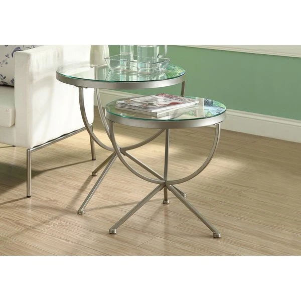 Monarch Specialties Nesting Table – 2Pcs Set / Silver With Tempered Glass