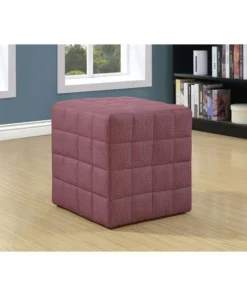Enjoy style and comfort right out of the box with this cube-shaped ottoman. Padded and upholstered all around in a light red linen-look fabric, this pouf features biscuit tufting on the top and all 4 sides which creates a pattern of small squares mimicking its boxy silhouette. The geometric shape of this versatile pouf will add a fun, contemporary touch to a family room, living room, or bedroom. It's ideal as a footrest in front of a comfy chair or as a convenient surface to place a tablet or book. Plus, this portable foot stool is compact and lightweight enough to easily move from room to room if you need an extra seat when entertaining guests.