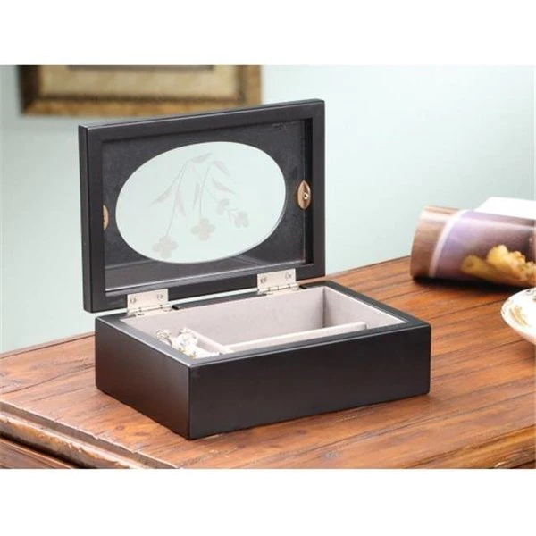 Jade is a compact yet very functional jewelry box. The lid features an oval shaped design with a simple silhouette of flowers etched in glass. When the lid is lifted. Jade features three felt lined compartments. one compartment is a ring holder and the other two are trays. Jade is also great to take with you while traveling.Glass Etched DesignRing StorageFelt LinedNo Assembly RequiredMade In China1 Year Manufacturers Limited WarrantyMdf