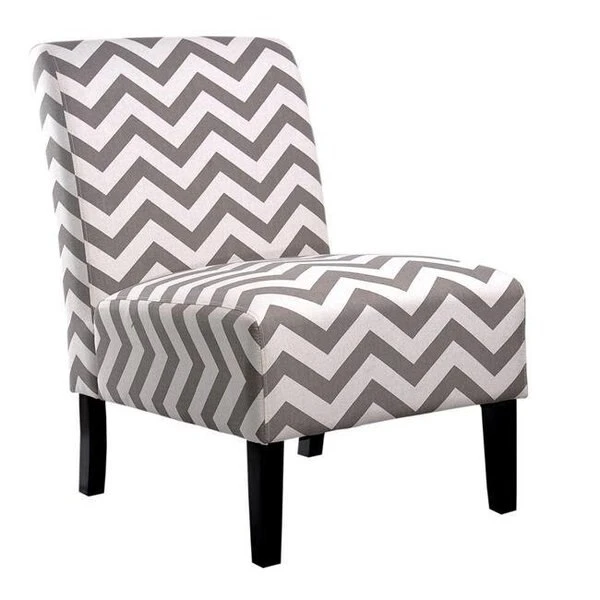 Chevron – A Timeless Pattern Katherine Collection Chevron pattern upholstery Deep Cappuccino finish on the legs Sleek armless design S-Spring Cushions. The Katherine Chevron Accent Chair is our new offering in the Katherine Collection. Featuring comfortable seating. a sleek armless design. and a reliable frame. the Katherine Chevron Accent Chair makes an excellent addition to any area. Affordable. high quality. and reliable – The Nathaniel Way. FeaturesKatherine Katherine Grey Chevron Accent ChairSpecificationsSize: 22 x 28.7 x 33.1Weight: 22 lbs