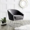 This armless accent chair is inspired by vintage design. Channel tufted wingback covered with upholstered velvet is an instant invitation to relax. Use it as an accent chair in the living room, as a side chair in the bedroom or as a stylish occasional chair in the home office. This dramatic accent piece makes a statement on its own with tapered espresso finish wood legs in a complementary finish. SpecificationsColor: NavyDimension: 30 x 30 x 30.5 in.Weight: 36.7 lbs