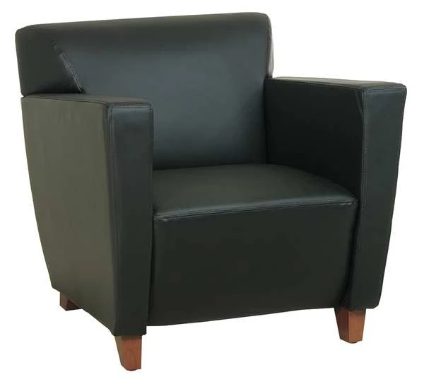 Reception Chair, Seat Material Leather, Back Material Leather, Seat Color Black, Weight Capacity 300 lb, Unassembled, Back Height 17 in, Arm Style Fixed, Overall Height 31 in, Overall Width 32 in, Overall Depth 34 in, Seat Width 22 in, Seat Depth 22 in, Back Width 25 in, Cushion Thickness 5 in, Lounge Series, Back Color Black, Features Thick Padded Seat and Back, Standards Green Guard
