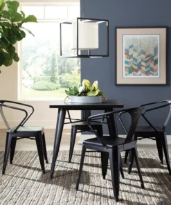 The 161 Collection blends mid century modern and industrial modern styles with current design trends to create timeless pieces that will seamlessly complement any decor. The OFM 161 Collection Industrial Modern 18" Mid Back Metal Dining Chairs with Arms, 4 Pack, are manufactured with galvanized steel for indoor and outdoor use. These stacking metal chairs come fully assembled and are welded together for added strength. The use of anti-UV powder to prevent heat retention make these dining chairs a great solution for outdoor spaces like cafes, bistros, pubs, or your own backyard. The mid back arm chairs feature extra wide seats, an x-brace beneath the seat that provides additional support and stability, measure 22.5" D x 20.0" W x 30.9" H, and hold at least 250 lb of weight. The metal surface makes cleaning easy and the plastic non-marring protective floor glides help prevent sliding and scratching. These chairs have been tested to light commercial-grade standards. With our 5 Year Limited Warranty, these patio chairs bring substance and style to any space.
