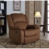 This recliner chair is fashion and simple. imparted an air of elegance to the room. It's a good choice for living room. bedroom. home theater. FeaturesStable iron frameEasy manual push-back recliner design with three motionsBuilt-in springs in both of back and seat with overstuffed paddingCurved padded armrestsRetractable footrestSpecificationsColor: BlackMaterial: PU. Foam. Spring. Plywood. PlasticBack Dimension: 24.9 x 20.4 in.Overall Dimension: 43 x 26.4 x 28.9 in.Seat Dimension: 20.1 x 18.9 in.Weight: 65.5 lbs
