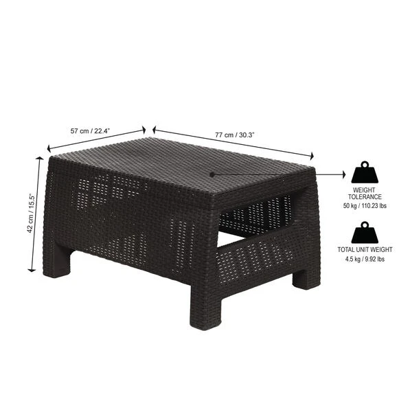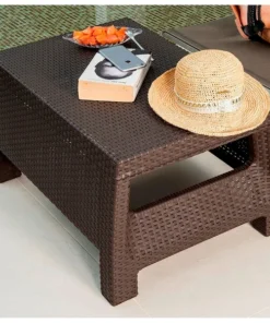 FERRARATM Coffee Table by MQ® is a fashionable table finished in a rich Espresso Polypropylene (PP) resin material with an attractive Rattan® look. It is lightweight yet rugged with a sleek design. This patio perfect table is UV-protected, weather resistant and will not fade or fray. It is designed to give your home a unique and modern touch in any area, and is ideal for outdoors. It is easily maintained with a quick soap & water wipe down to clean and freshen. This table can also be combined with other FERRARATM collection items to create a stylish ensemble