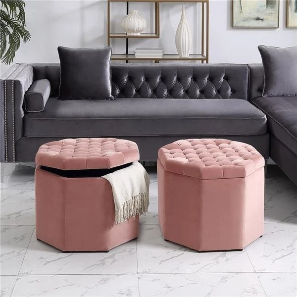 Our octagon storage ottoman adds a contemporary yet playful touch to your living room bedroom or entryway. This stunning ottoman holds a hidden secret: a convenient storage compartment tucked away under the top. If you live in a small apartment or simply need extra space to keep your novelties the storage ottoman is designed especially for you. Featuring soft fabric with tufting on top and the comfort of a high density foam cushioned seat this sophisticated piece provides not only dual functionality but also a focal point of style and flare that seamlessly incorporates your main decor to create an inviting and comfortable atmosphere to come home to.About the Company: Inspired Home Co. provides modern casual on-trend occasional furniture ottomans benches fabric headboards and beds side tables dining chairs barstools accent chairs accent tables and sofas. Inspired Home is known for providing fashion forward designs quality home furnishings at affordable prices.