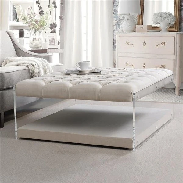 Our linen oversized square ottoman adds a contemporary yet reserved touch to your living room or home office. Featuring supple linen with button tufting the comfort of a high density foam cushioned seat sturdy acrylic feet this chic oversized accent piece is perfect for kicking up your feet and watching the game.About the Company: Inspired Home Co. provides modern casual on-trend occasional furniture ottomans benches fabric headboards and beds side tables dining chairs barstools accent chairs accent tables and sofas. Inspired Home is known for providing fashion forward designs quality home furnishings at affordable prices.ELEGANT DESIGN – Traditional style oversized square Ottoman w/Modern appeal Upholstered tufting with linen fabric Stylish Solid acrylic legsCOMFORT – Stylish button tufted for added style and comfort great height for sitting and resting your feet or legsEXTRA STORAGE – Spacious storage compartment for books magazines games pillows and other sundries MULTI-FUNCTIONAL – Can be used in multiple room settings: as an ottoman bench coffee table vanity chair dressing chairVERSATILE USE – Ottoman provides extra seating with an elegant look that can fit into any room: bedroom living room dining room entryway also blends with a variety of decorMEASUREMENTS – 36.8"L x 35.6"W x 16.7"HCOMFORT AND QUALITY – Stylish button tufting for added style high density foam sitting for exceptional comfort great height for sitting and resting your feet or legsEASY ASSEMBLY INSTRUCTIONS – Stress free assembly and easy-to-follow directions