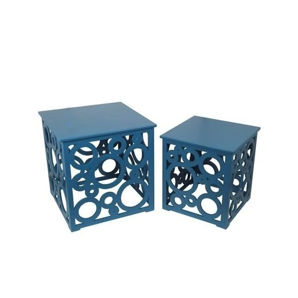Accentuate any living space with this blue 2 piece cut out tables from Privilege International. Home decor items are the best way to ensure that you can inject your personality into your home and make everything look like a reflection of who you are. Choose from an exciting range of products for home decor and add lovely silhouettes or textures to any room. FeaturesCut Out TablesGeometric DesignStackable TableMatches to Floor SettingContemporary Style Design2 PieceSpecificationsColor: BlueDimension: 20.5 x 20.5 x 21.5 in. & 16.5 x 16.5 x 18.5 in.