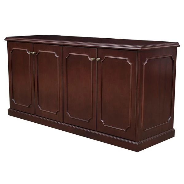 Storage Buffet, Prestige Series, Height 36 in, Width 72 in, Depth 24 in, Color Mahogany, Material Commercial Grade Wood Veneer with Wood Trim, Number of Shelves 2, Number of Drawers 0, Doors Yes, Handle Metal Bail Pull, Assembly Required, Standards ANSI/BIFMA