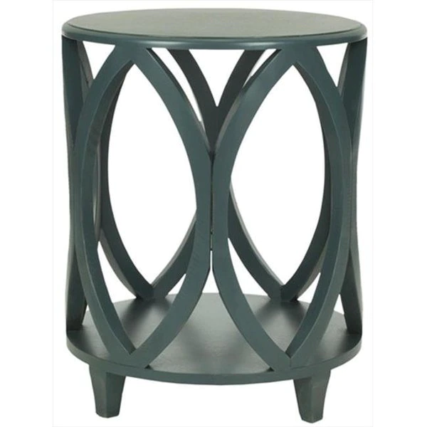 With its stylish modern geometric shape crafted of pine in dark teal finish. the Janika Accent Table brings chic. organic style to any room.FeaturesMaterial – PineColor – Dark TealDimension – 19.75 D x 19.75 W x 24.5 H in.Item Weight – 10 lbs.Care InstructionsWood is a natural material with variations of color shade. configuration. streaks. and grain structure. Each individual piece of Safavieh furniture has characteristic markings that will differ from photo and showroom samples. Regular attention and maintenance of fine furniture can ensure its beauty for years to come. Always use felt pads under all articles to prevent discoloration or softening of the lacquer. Plastic and rubber bases on items can discolor wood.