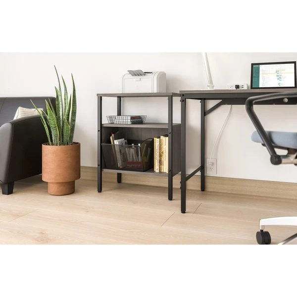 Whether you are setting up your home office or creating the ideal learning space, this small-scale, multifunctional storage unit will keep things tidy. It provides organization and display for reference materials, technology and decor on the 21" x 11" x 12-3/4" shelf, 21" x 8-1/4" top opening or lower compartment. With a laminate top and black metal frame, this storage unit pairs perfectly with the Safco Simple Work or Study Desks to create a seamless aesthetic in your home. Versatile design even extends the worksurface of your desk. The 3/4" thick top features a smooth laminate finish. Back panel provides robust structural support and offers many options for cable management, including multiple passthrough locations and attachment points for power strips or other accessories. Durable, powder-coated steel frame is designed to last. Leveling glides protect floor and add stability. Minimal assembly means hassle-free setup.