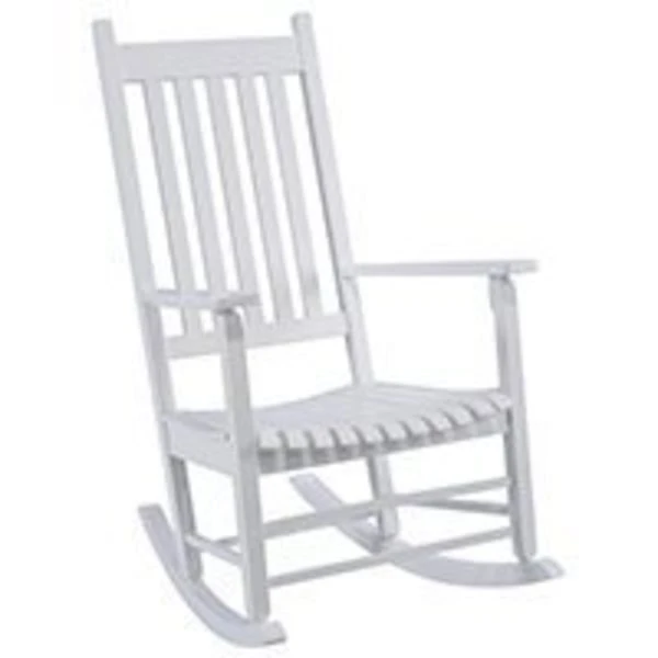 Seasonal Trends Rocking Box Chair, 250 lb, Seat Material: Indonesian Hardwood, Seat Width: 21 in, Seat Height: 18 in, Back Height: 30 in, Arm Height from Floor: 26-1/2 in, Frame Material: Indonesian Hardwood, Frame Color: White, 34 in D, 45-3/4 in H, Includes: Wood Care Guide