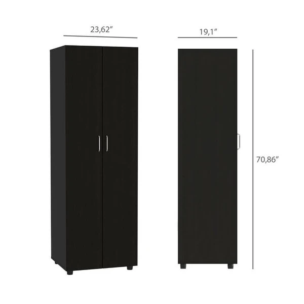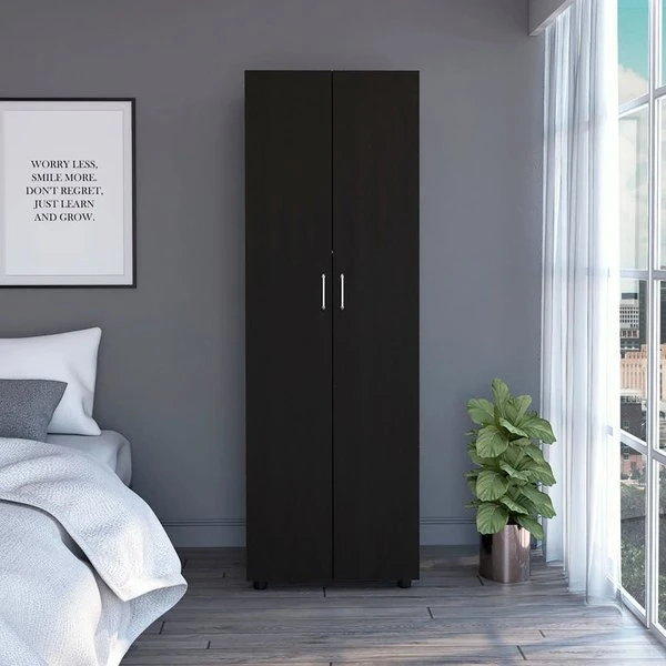 Keep your wardrobe in order with a bedroom armoire, ideal for storing and organizing all your apparel. Constructed in a stunning, vertical shape with durable swinging doors for a minimalist look that will compliment your space. Two spacious internal shelves and closet space are perfect for storing clothes, coats, shoes, and more.