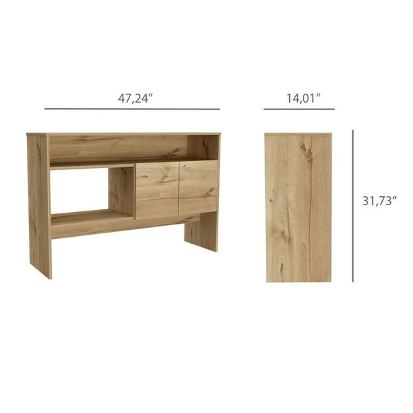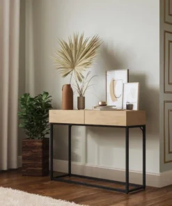 This modern console table is sure to make your inner minimalist jump for joy. Combining soothing wood tones and clean, symmetrical lines, this desk is inconspicuous in all the right ways. Use it to display family photos and potted plants, or give it a practical purpose and keep your keys, wallet, phone, and sunglasses stored on its surface.