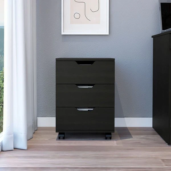 Create order with a stylish filing cabinet, with ample storage for all your files and office needs. This dynamic cabinet stands on wheels and can be easily moved to wherever you need it to go. The useful design also features cutaway handles for added interest and functionality.