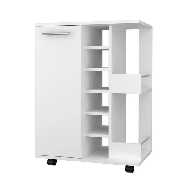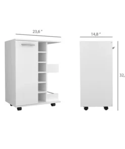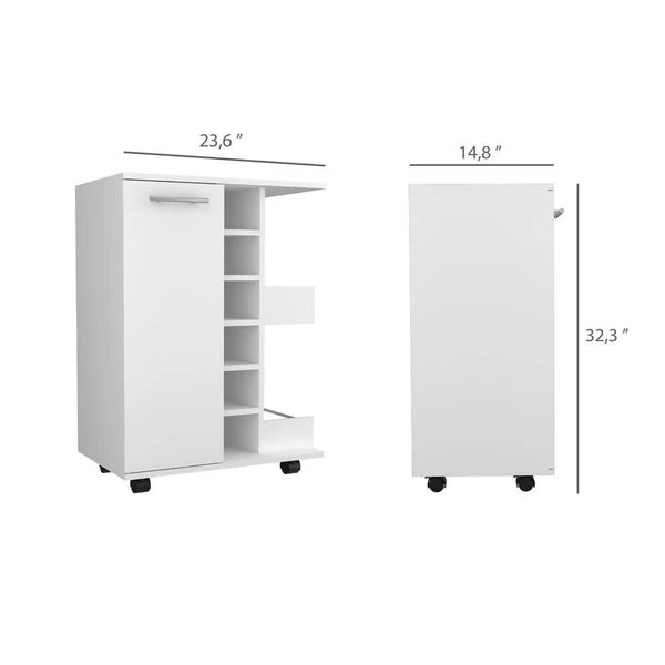 Mix it up with this charming bar cabinet that easily moves on wheels to follow the party. A perfect blend of internal and external storage will help you to keep all your wines and liquors neat and organized. Don't forget about the handy surface up top, great for mixing drinks and opening bottles.
