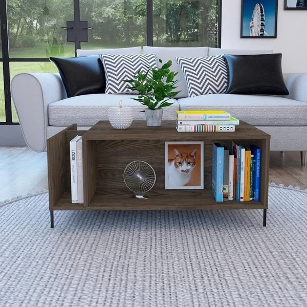 Sharpen your living room with an industrial-inspired focal point using this modern coffee table as a centerpiece. The frame is crafted from black oxide coated steel. A roomy surface up top is made from laminate composite wood with a natural-feeling grain texture for a splash of rustic charm. This piece also includes a space below for storage, for blankets or magazines.