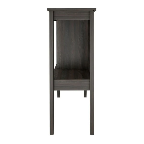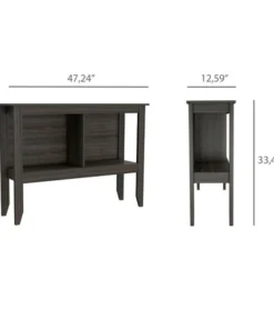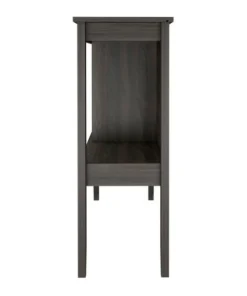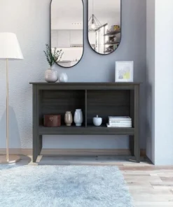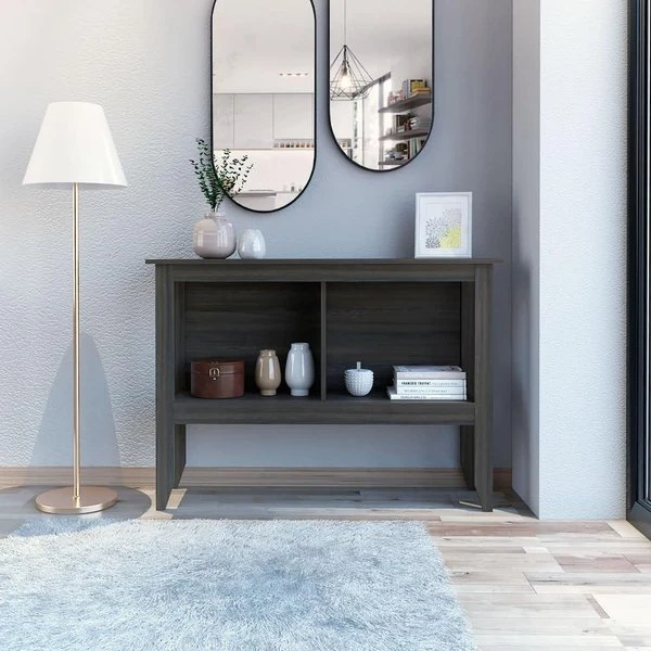 Give your entryway a facelift with this dreamy console table. The console table offers a cintemporary twist to a timeless classic, with two open shelves and a top surface perfect for showing off your décor. Supported by thick legs with sloped ends, this sturdy and functional table is calling your name (and we think you should answer it).