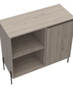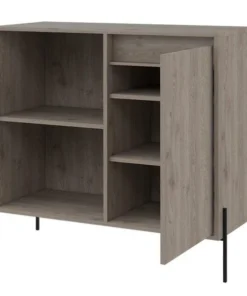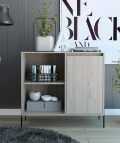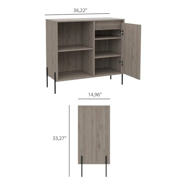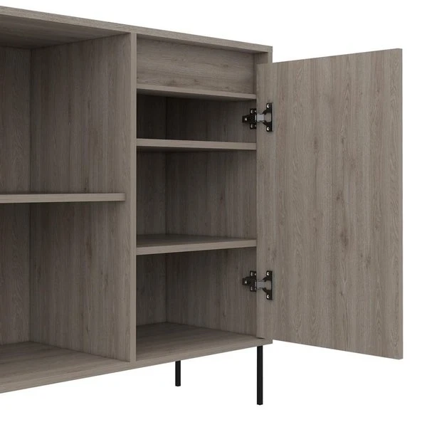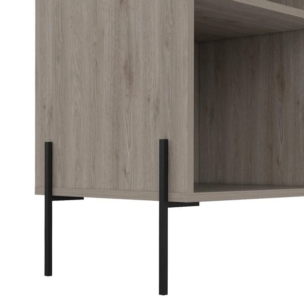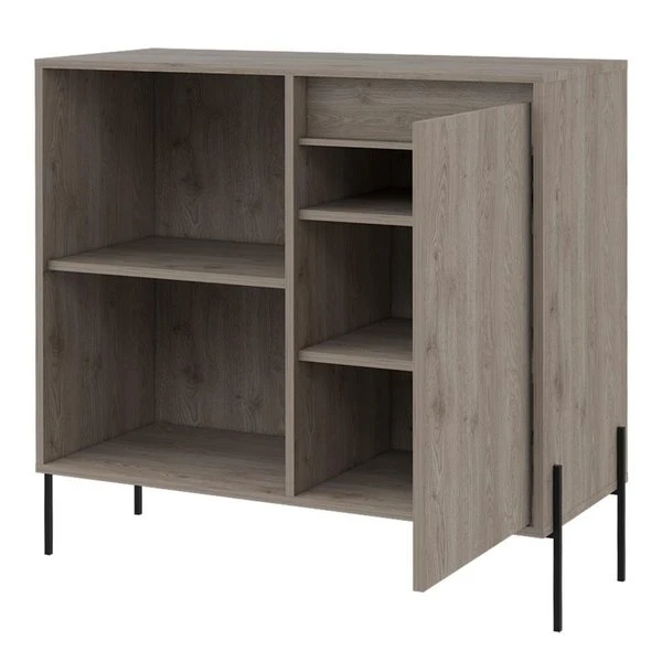 Add a touch of modernity to your space while keeping your knick-knacks organized and off the floor. This cabinet combines open and closed storage components so you can show off decor and keep the clutter out of sight at the same time. The metal legs and natural brushed grain square out and modernize the look and feel of this accent cabinet.