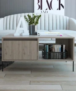Show off your space with a touch of modern design. This sleek coffee table has been crafted to offer a combination of out-of-sight storage for everything from blankets to board games and an open display compartment where you can show off books or decor. The smooth top surface provides a perfect platform for fresh flowers or a place to keep your remotes within reach.