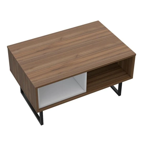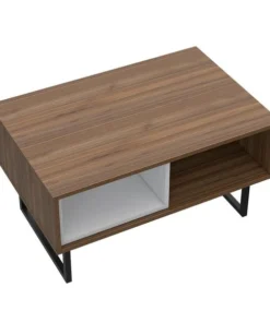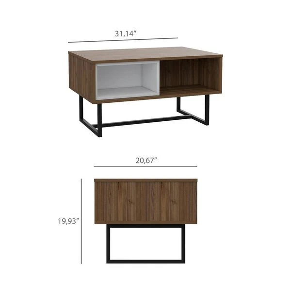 Center your living room with a sturdy coffee table in a calming modern style. This must-have table appears to float on black steel legs that emphasize its mid-century modern design. Two internal storage compartments are ready to hold favorite books and coasters, plus a versatile surface for trays of drinks or an eye-catching centerpiece.