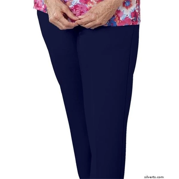 FeaturesAdaptive Dressing at its BestThese terrific Adaptive Clothing Wheelchair Pants/Slacks for Women are perfect for those with lowered mobility/wheelchair user dependency and/or incontinenceThis easy access adaptive apparel pant for women design allows for quick and easy changes for those with incontinence issuesThey slip on with ease from a seated position! (No standing required)These womens easy to put on handicapped pants/slacks for wheelchair users feature three adjustable dome closures at the waist for even easier seated dressingThe large back flap provides discretion for incontinent or immobile elderly women44 inch OutseamThese wheel chair pants / trousers for women are terrific for those that require a patient lift or hoistMade of machine washable polyester gabardineColor – NavySize – Small (6-10)How do you put these womens wheel chair Clothing pants/slacks on?;The individual remains in a seated position.The individuals legs are inserted into the pant legs and drawn up to the upper thigh.The caregiver simply snaps the generous overlap into placeThe person being dressed is left completely covered without ever having to stand.Assisted disrobing is just as easy.These adaptive handicap and/or incontinence pants/slacks for women are terrific for adults/elderly/seniors with special needs who are disabled or wheelchair dependentWhat a great idea! This item is usually offered in a full figure plus size clothing rangeA great gift for home care. nursing home residents and hospital patients