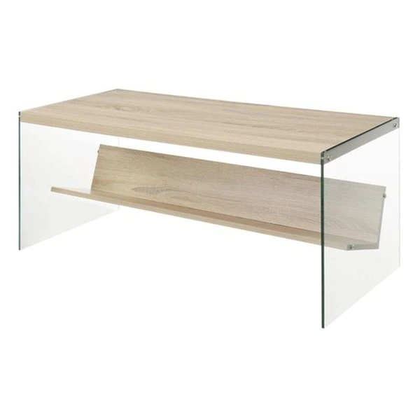 Get in the orbit of the Soho Coffee Table that is perfect for any modern space. Featuring a generous weathered white top surface to enjoy a drink or two while watching TV. The tempered glass sides catches the eye and makes this table a sparkling addition to any room. This decorative yet practical coffee table has a convenient stylish bottom shelf for plenty of added display and storage. Will provide years of enjoyment. Tools are provided for easy assembly. FeaturesWeathered White Top SurfaceLower Shelf for Additional StorageTempered Glass SidesWill Provide Years of EnjoymentEasily Complement any DecorCoffee TableSpecificationsColor: Weathered WhiteDimension: 17" H x 17.75" W x 40" LWeight: 36.3 lbs