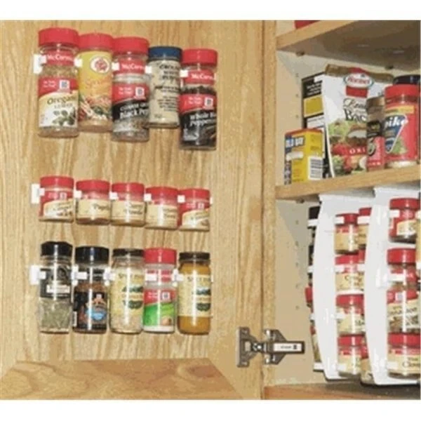 16 Large SpiceStor clips with heavy-duty double-sided foam tape – Mount those larger spice bottles to your cabinet doors or walls – Qty 4 – 10 long by 1 high strip holds 4 containers – breaks apart into smaller segments – Fits most standard round containers 1.8 to 2.4 diameter – Won't break – Made in USA – SpiceStor Organizer Large Cabinet Door Clips are used to easily organize and expand your spice storage by adding spice clips to the inside of your cabinet doors or other surfaces. This allows quick convienient access to your most often used spices. Works with larger round spice bottles with diameters from 1.8 to about 2.4. The clip strips are mounted with heavy-duty double-sided sticky foam tape. Individual clips easily snap apart into shorter lengths. Installation is simple and requires no tools. Made in USA using recycledrecyclable materials. * Spices not included. Includes: 16 Large Kitchen Cabinet Door Clips (qty 4 x 4 clipsstrip)Dimensions:Length:10Height:1Width:1