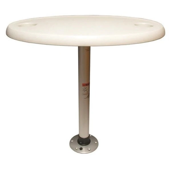 FeaturesThread lock table round thread lock package features a locking. surface mount base. thread lock post and an anodized aluminum mountSpecificationsSize: 18" x 30"Shape: OvalDimension: 3.5" H x 27.75" W x 28" LWeight: 7.01 lbs