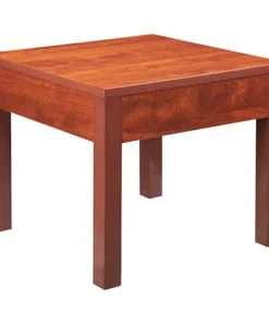 Parson-style corner table is perfect for your lobby or office suite. The 1" thick particleboard top with melamine surface is supported by a frame/support panel under the top and 2" square, melamine laminated legs for sturdy use.