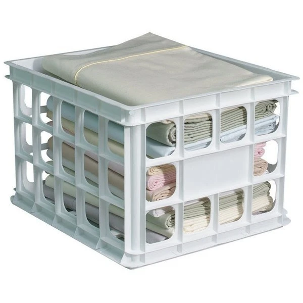 Crates provide a versatile solution ideal for office dorm garage or utility room storage needs. The Storage Crate is a multi-purpose solution that can address a variety of storage needs in the home. It is an ideal fix for keeping all of your letter-sized files neatly stored near a desk allowing for easy access in a home office a school or dorm setting. Multiple crates can stack on top of each other to use vertical space efficiently and create a custom storage solution. Integrated handles allow for easy transporting when storage is needed on the go.